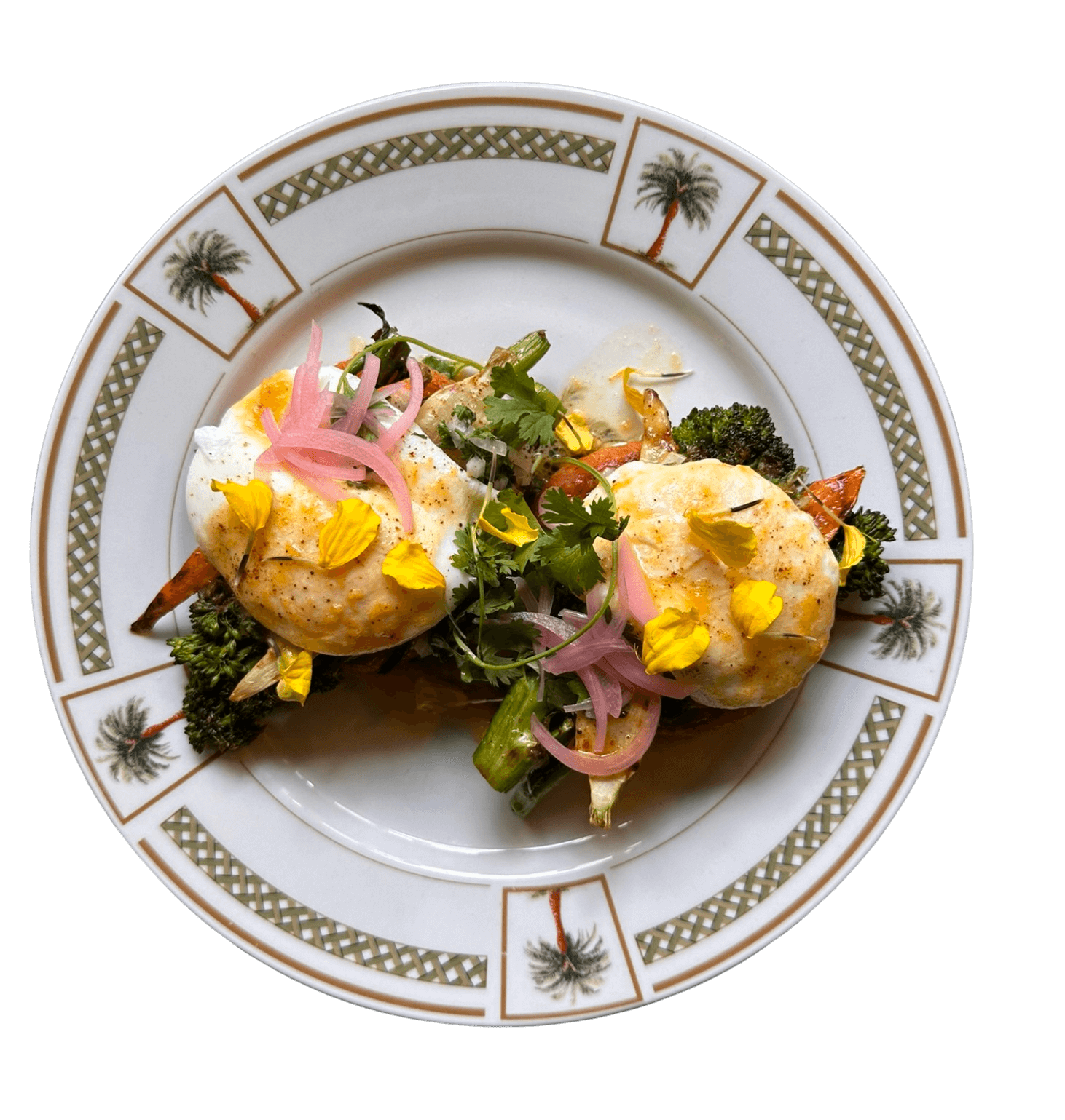 Our signature crispy yuca base topped with poached eggs, fresh herbs, hollandaise sauce and grilled veggies. Add your choice of protein: bacon $4, local longaniza $5, steak $12 or shrimp $10